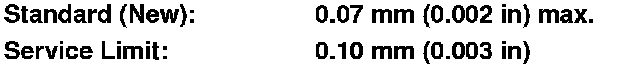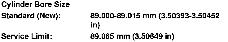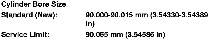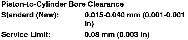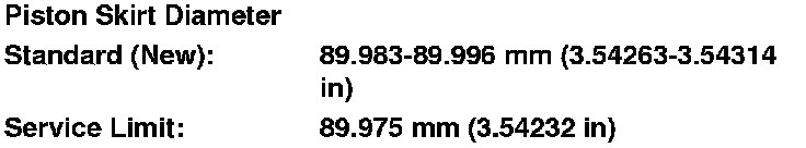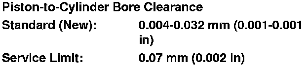 8. Calculate the difference between the cylinder bore diameter and the piston diameter. If the clearance is near or exceeds the service limit, inspect the piston and the cylinder bore for excessive wear.