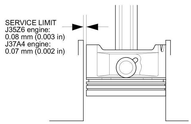J37A4 engine: If the measurements in any cylinder are beyond the service limit, replace the engine block. The J37A4 engine block can not be rebored.