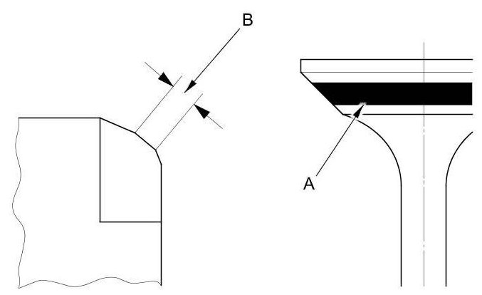 7. The actual valve seating surface (B), as shown by the blue compound, should be centered on the seat: