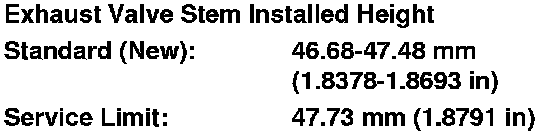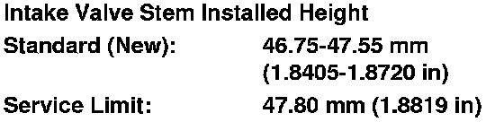 9. If the valve stem installed height is over the service limit, replace the valve and recheck. If it is still over the service limit, replace the cylinder head; the valve seat in the head is too deep.