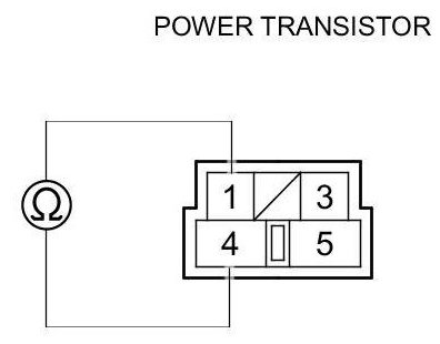 3. Measure the resistance between terminals No. 1 and No. 4 of the power transistor. It should be about 1.5 kOhms.