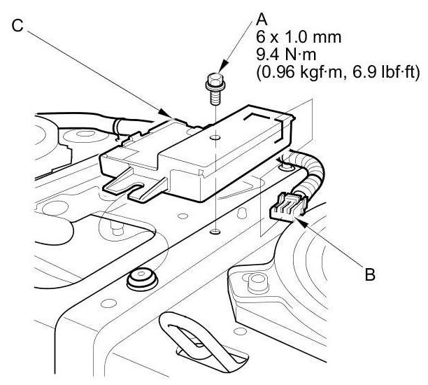 Remove the bolts (A), then disconnect the 6P connector (B) from the electrical