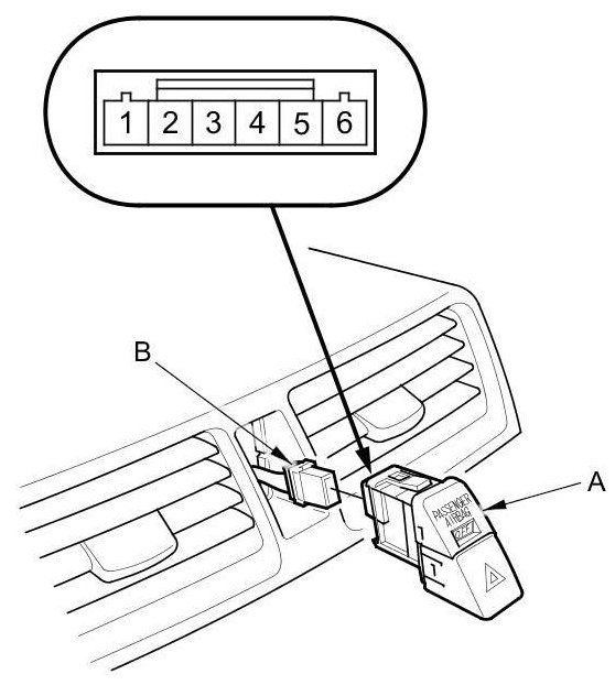 3. Disconnect the 6P connector (B) from the hazard warning switch.
