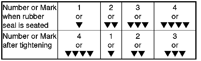 - Tighten the filter by turning it clockwise three numbers or marks from the one you noted. For example, if mark �V is at the bottom when the seal is lightly seated, tighten the filter until the mark VVVV comes around to the bottom.