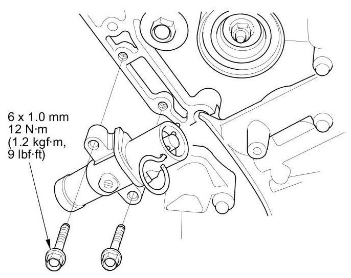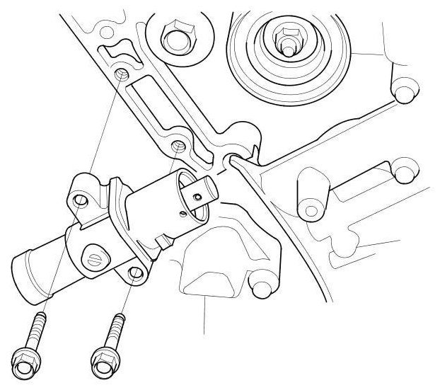 10. Thread the battery clamp bolt in as shown to hold the timing belt adjuster. Tighten it by hand, do not use a wrench.