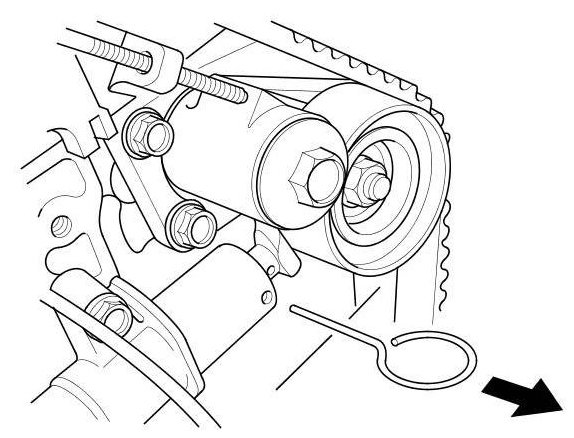 14. Remove the pin from the auto-tensioner.