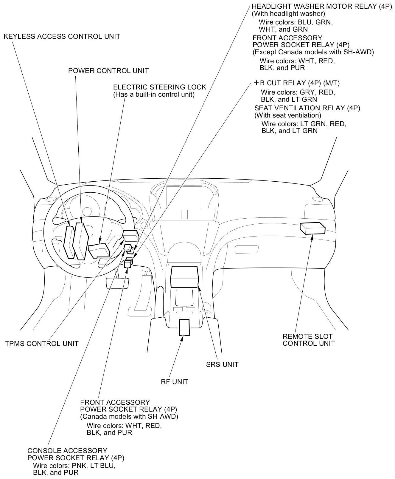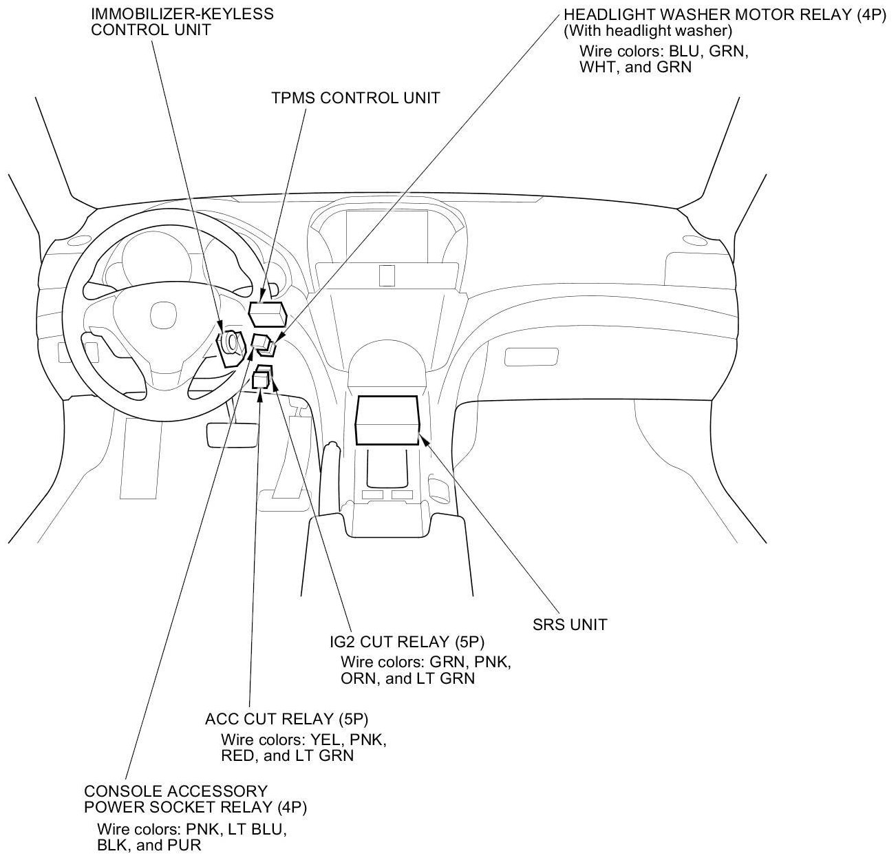 Relay and Control Unit Locations - Dashboard