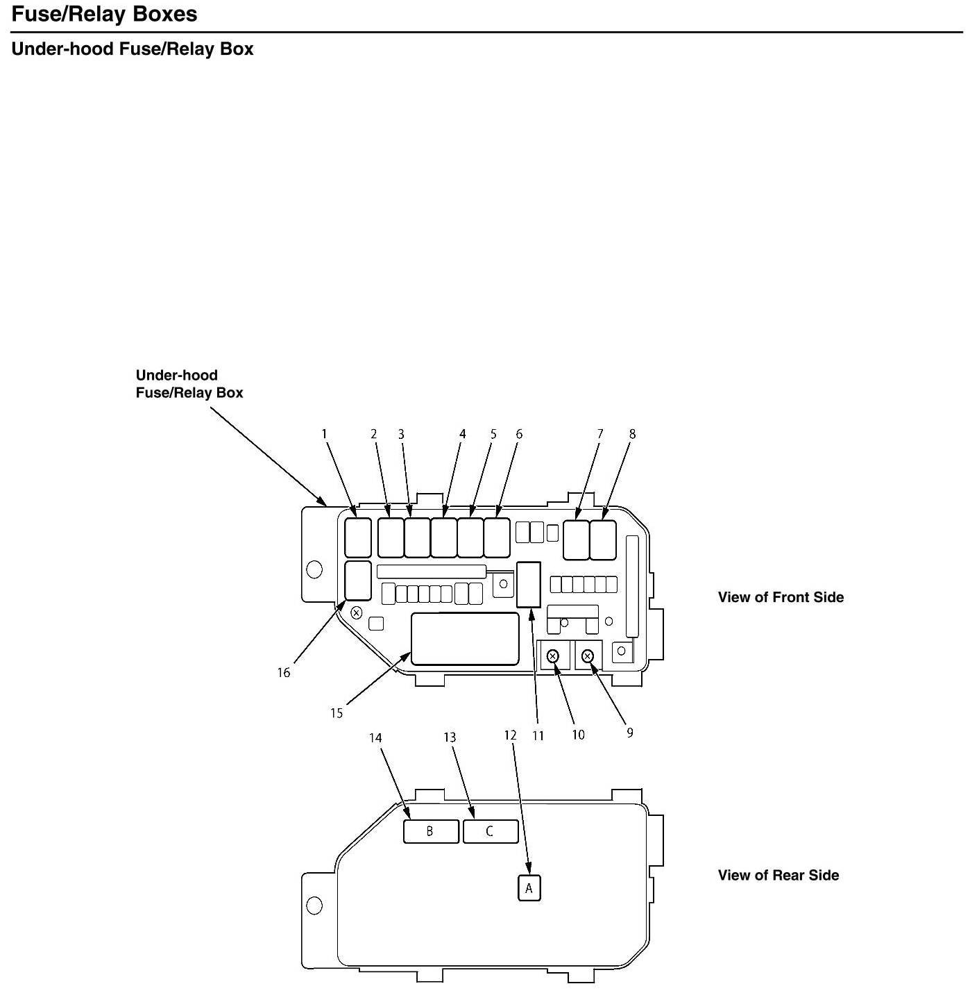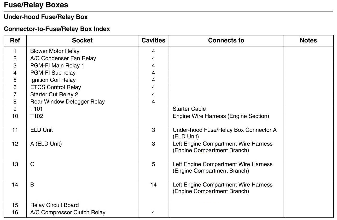 Under-hood Fuse/Relay Box - Connector-to-Fuse/Relay Box Index
