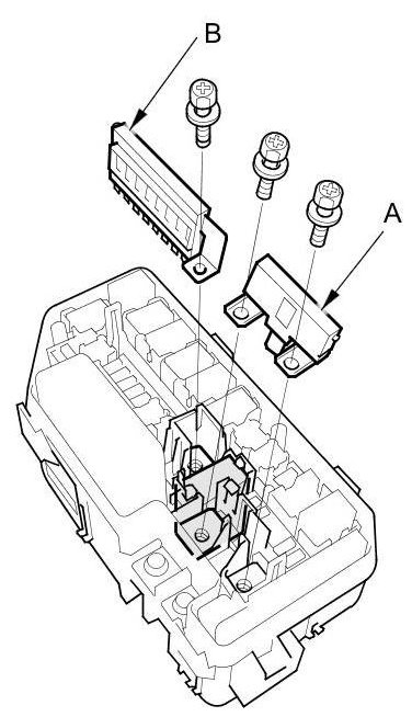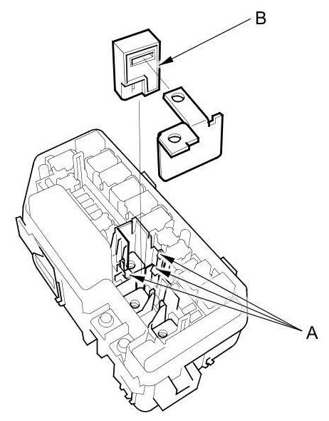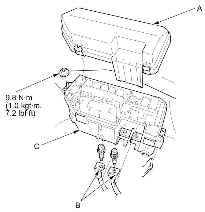 3. Remove the under-hood fuse/relay box (C) from the bracket.