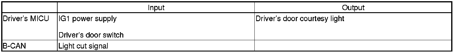 The driver's MICU controls the interior lights and ignition key light ON/OFF based on input signals from each switch.