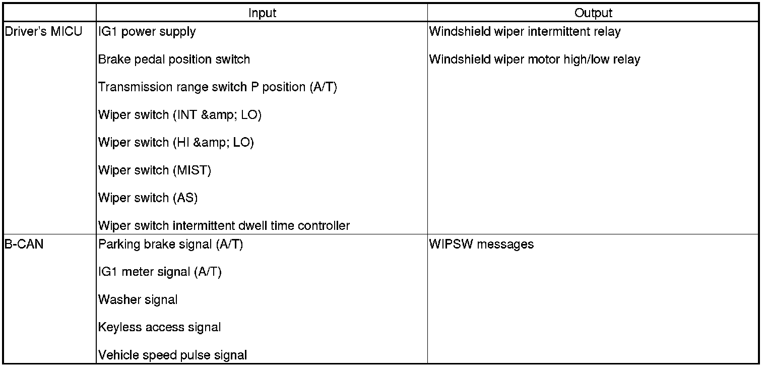 The driver's MICU controls the wiper based on inputs from each switch.