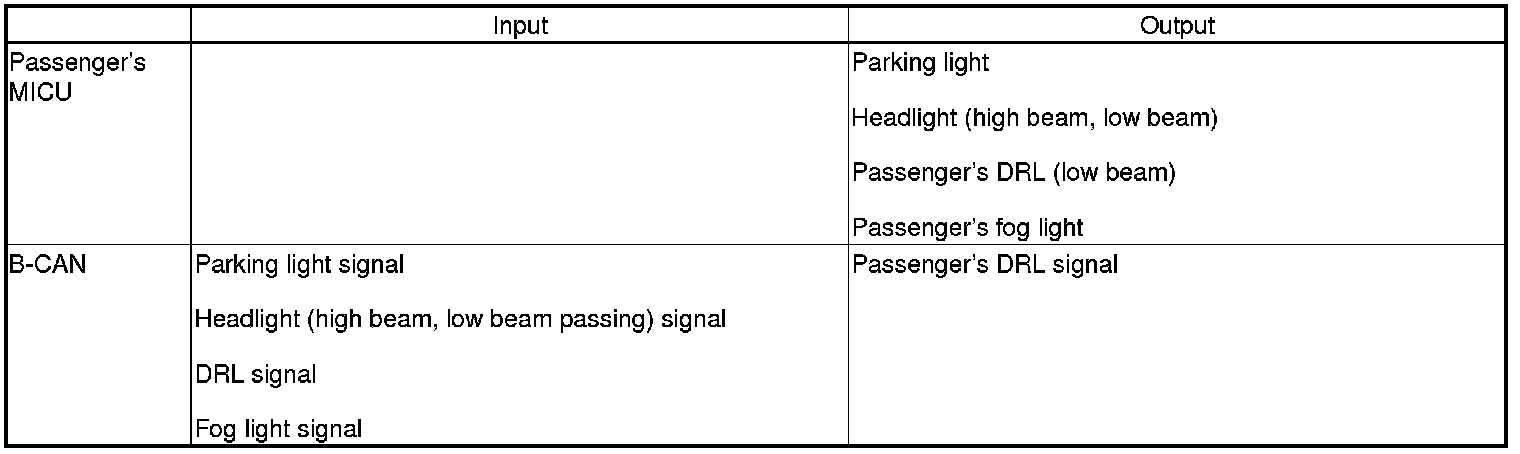 The passenger's MICU controls the front passenger's side headlight, and parking lights based on inputs from the driver's MICU.