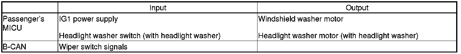 The passenger's MICU controls the washer motor based on inputs from the wiper switch.