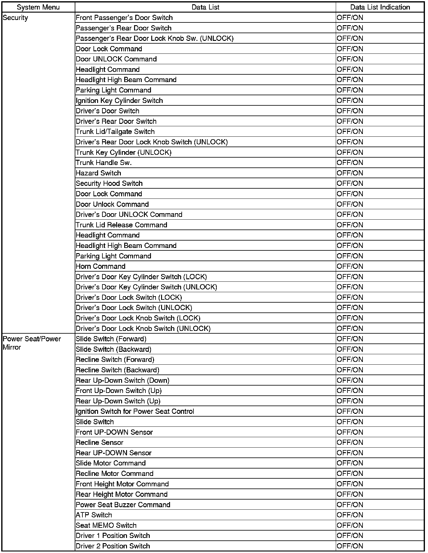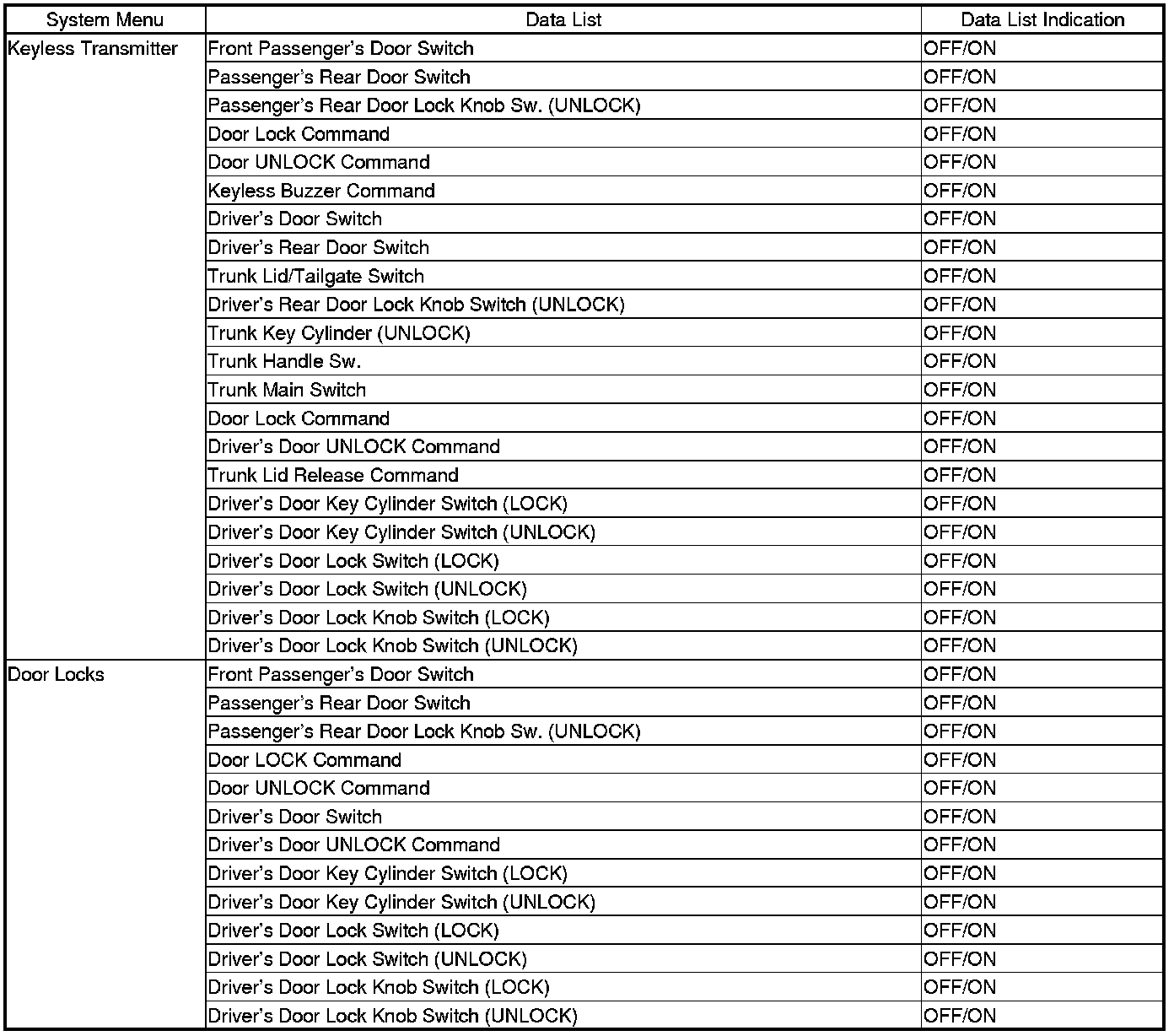 Power Door Locks (UNLOCK)*