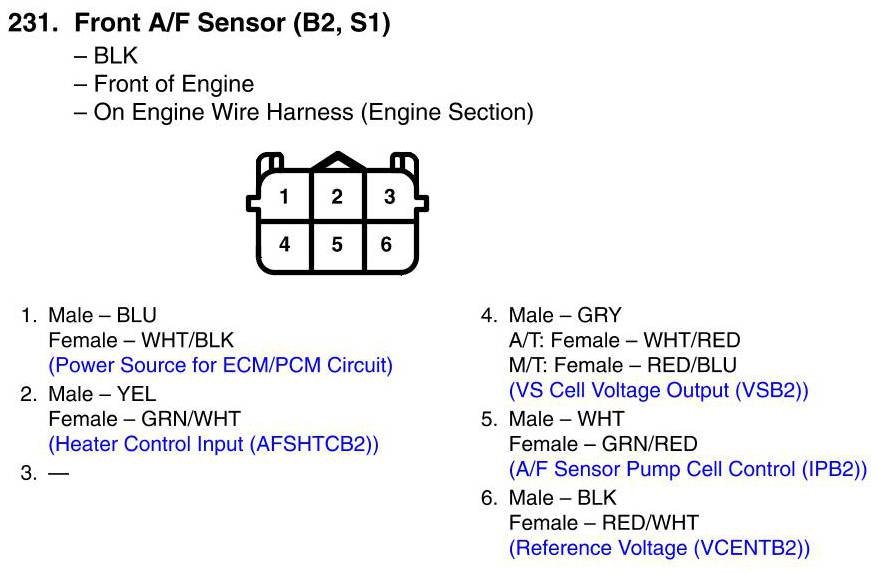 Front A/F Sensor (B2, S1) Connector View