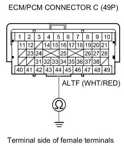 8. Check for continuity between ECM/PCM connector terminal C44 and body ground.