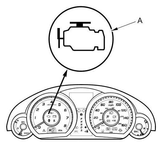 1. Start the engine, and check the MIL (A).