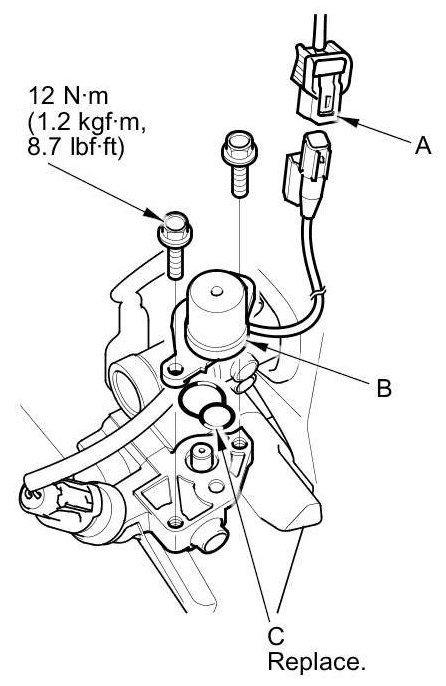 3. Install the parts in the reverse order of removal with a new O-ring (C).