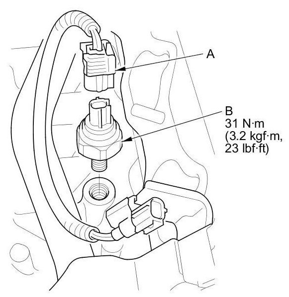 4. Remove the knock sensor (B).