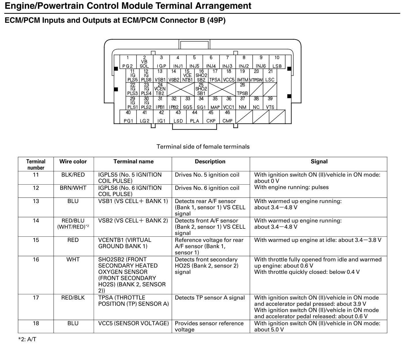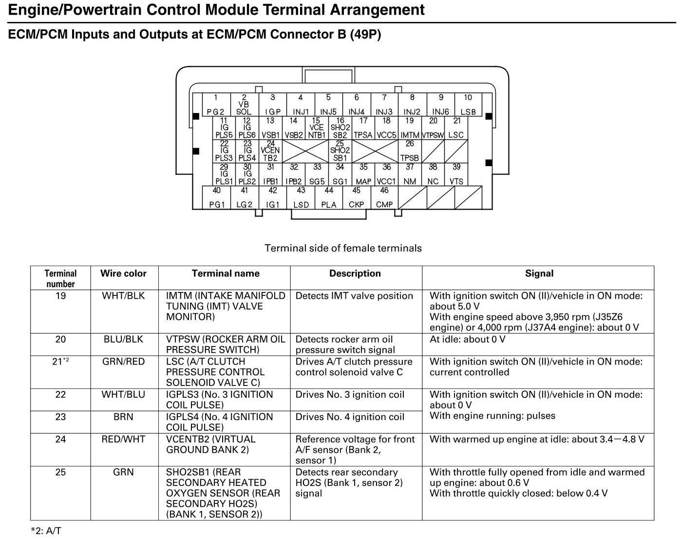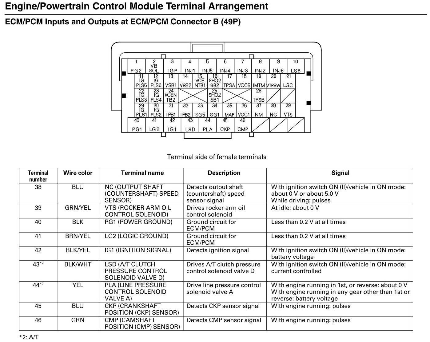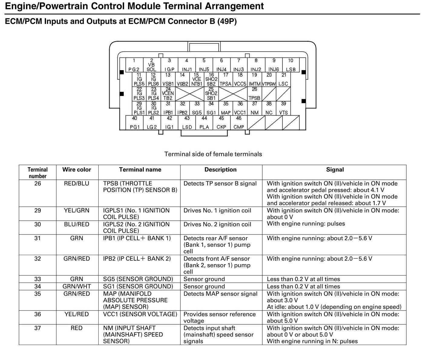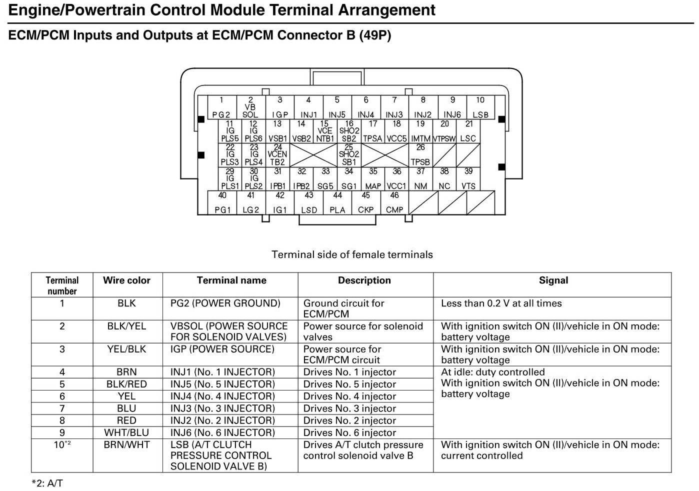 ECM/PCM Inputs and Outputs at Connector B