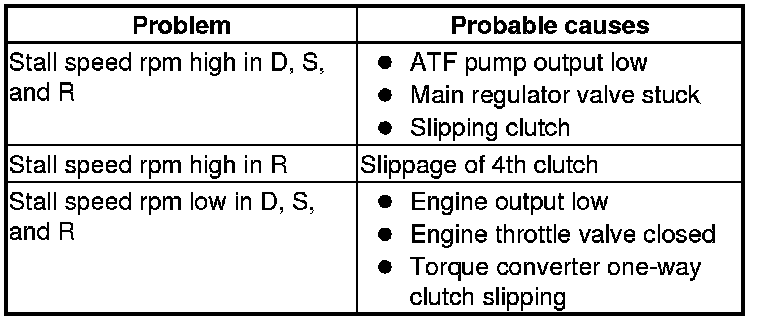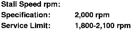 10. If any of the stall speeds are out of the service limit, refer to the problems and probable causes listed in the table.