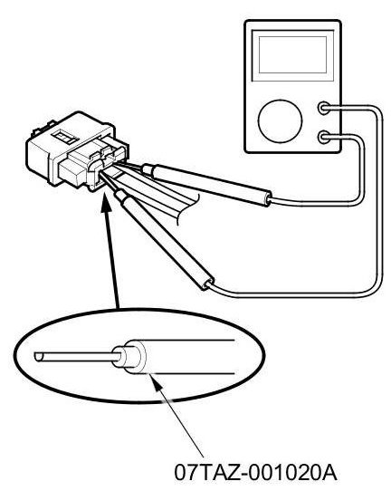 - To prevent damage to the connector terminals, do not insert the test equipment probes, paper clips, or other substitutes as they can damage the terminals. Damaged terminals cause a poor connection and an incorrect measurement.