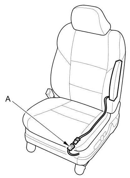 9. Disconnect the SRS floor wire harness 4P connectors (A) from the driver's and the front passenger's seat belt tensioner 4P connectors.