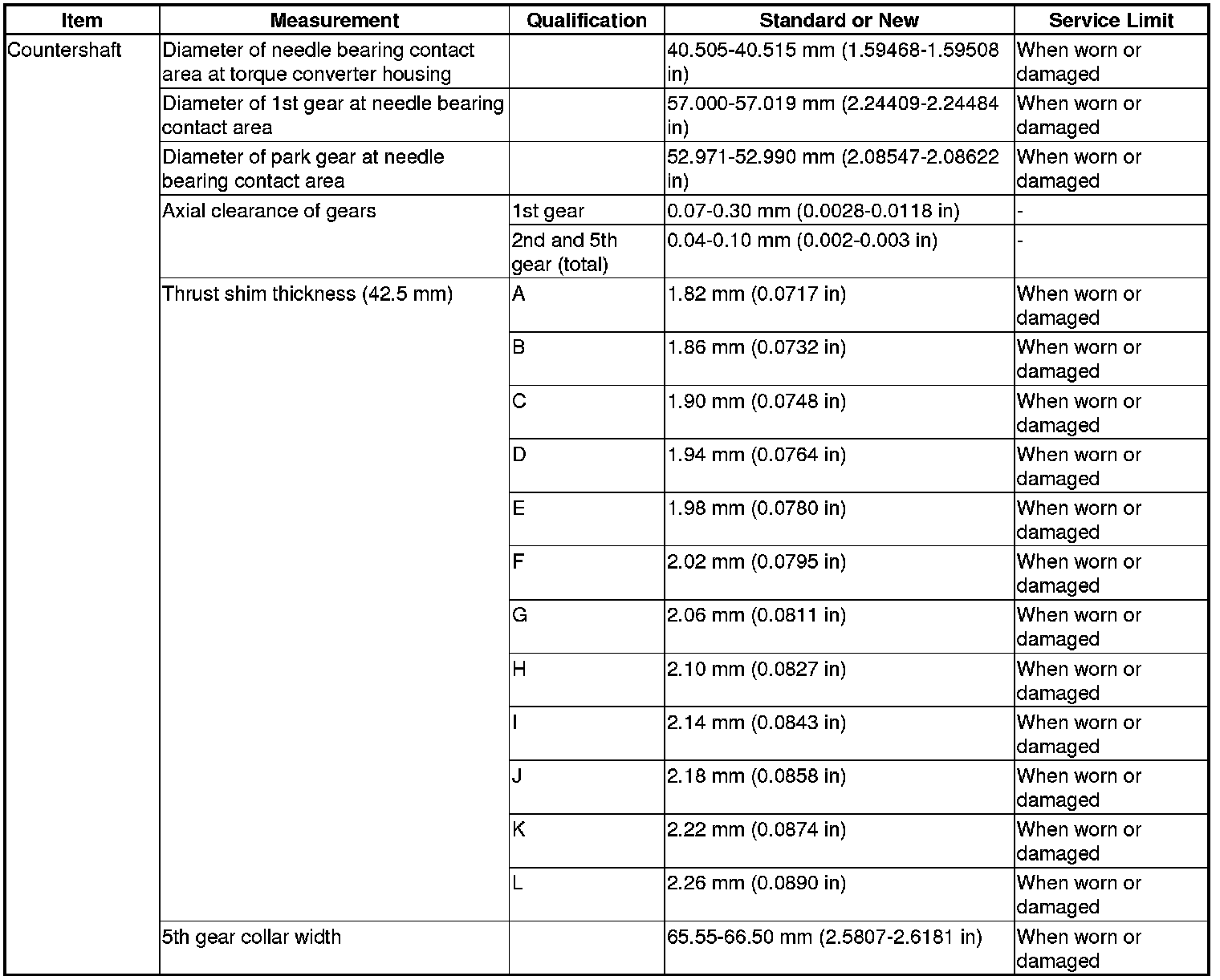 Countershaft Specification(s) (A/T)