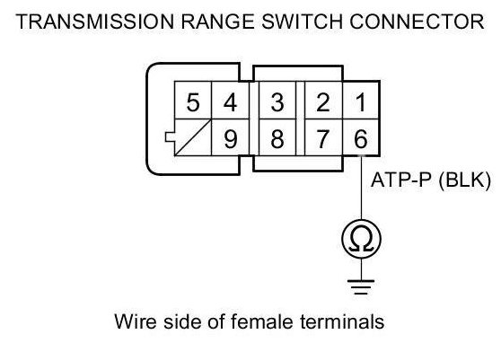 22. Check for continuity between transmission range switch connector terminal No. 6 and body ground.