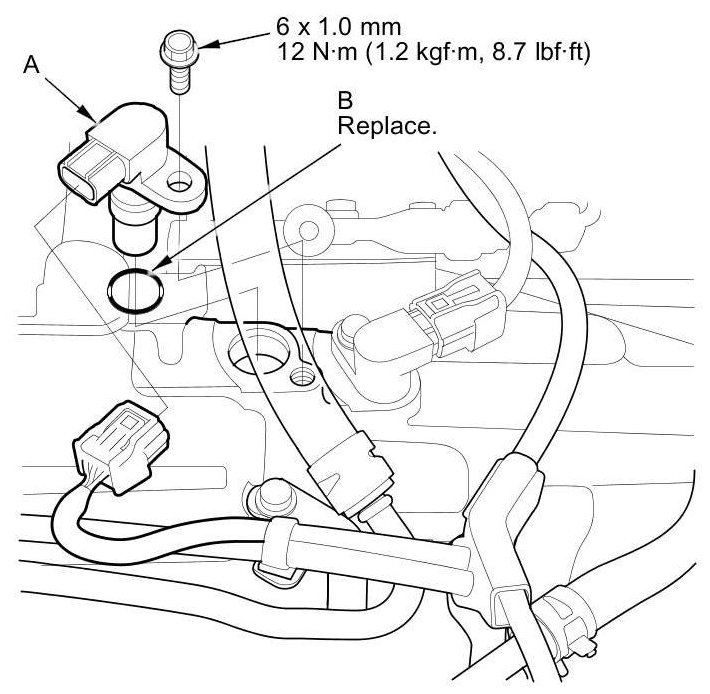 4. Install a new O-ring (B) on the new input shaft (mainshaft) speed sensor, then install the input shaft (mainshaft) speed sensor.