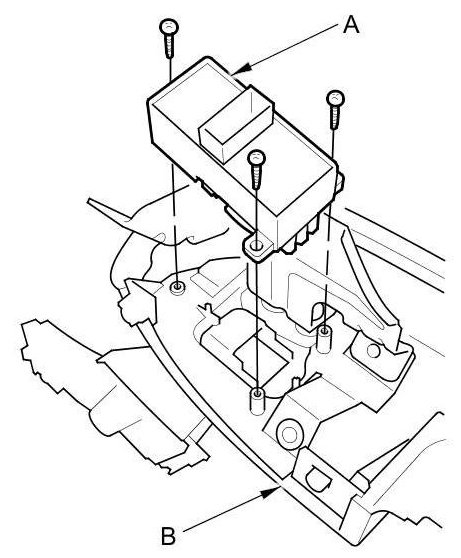 2. Remove the three screws and rear power window switch (A) from the armrest assembly (B).