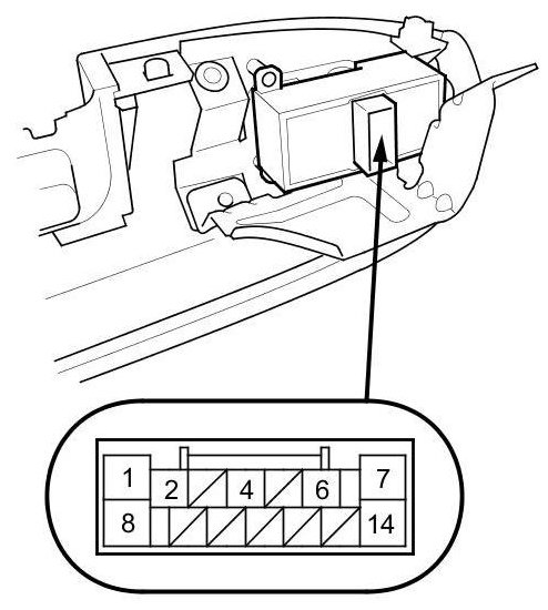 - When the power is connected to terminal No. 8 and ground is connected to terminal No. 14, then push the rear power window switch to DOWN. There should be continuity between terminals No. 8 and No. 1.