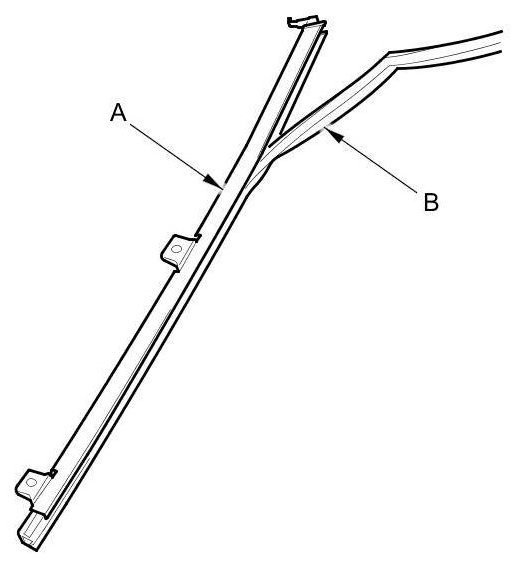 10. Remove the rear lower channel (A) from the glass run channel (B).