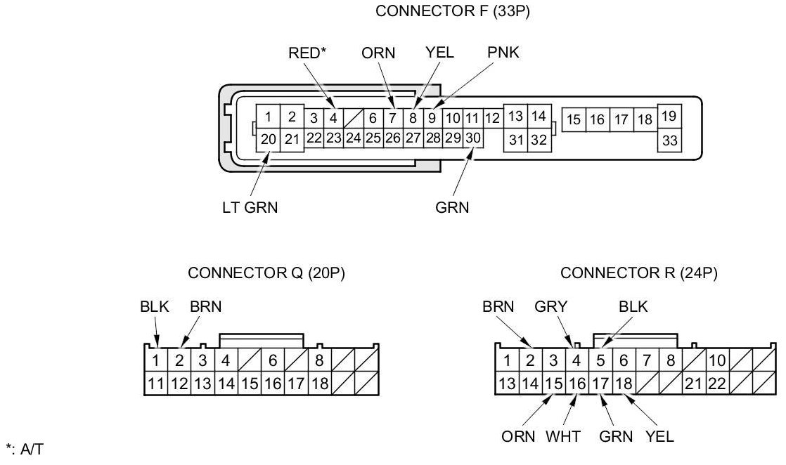 3. Disconnect driver's under-dash fuse/relay box connectors F, Q, and R.