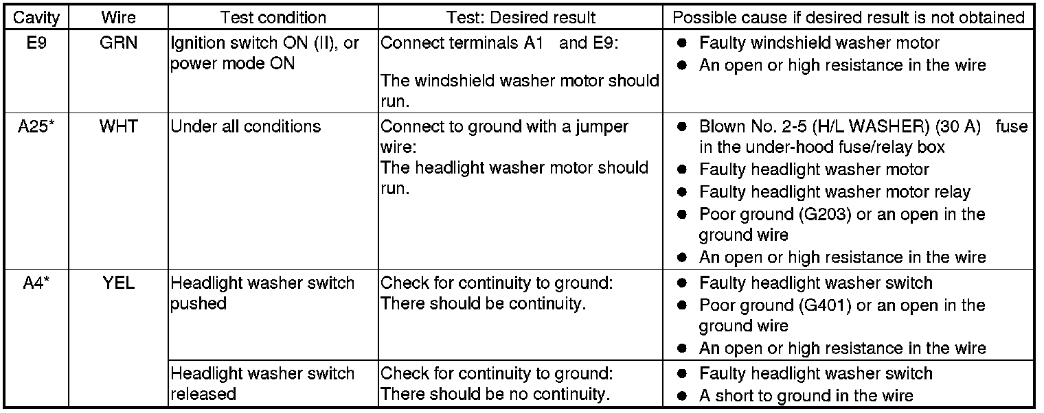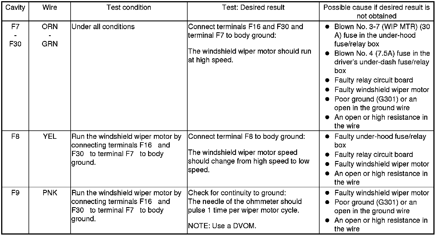 Wipers/Washers (Driver's and Passenger's MICU) Input Test