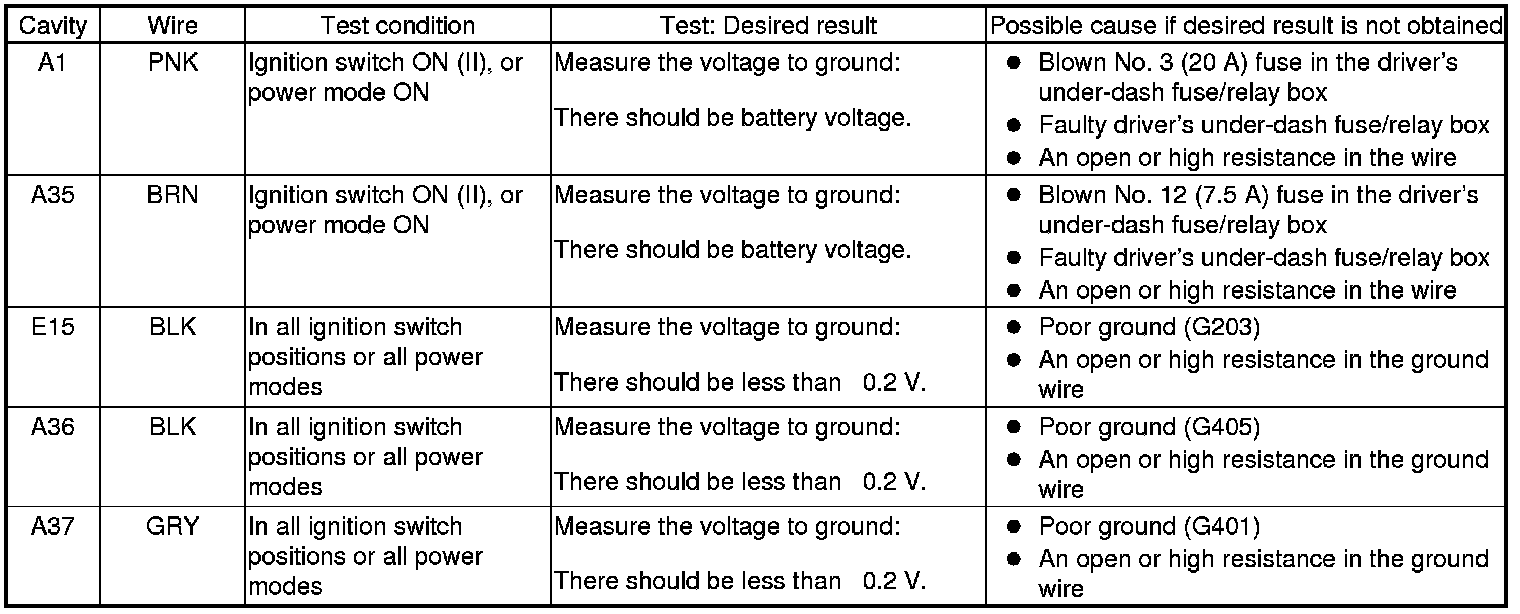 NOTE: Before testing, troubleshoot the multiplex integrated control system first, using B-CAN System Diagnosis Test Mode A Troubleshooting - B-CAN System Diagnosis Test Mode A.