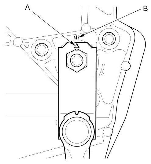 10. Install the link to the wiper motor shaft, then align the mark (A) of the link and the mark (B) of the wiper linkage assembly.