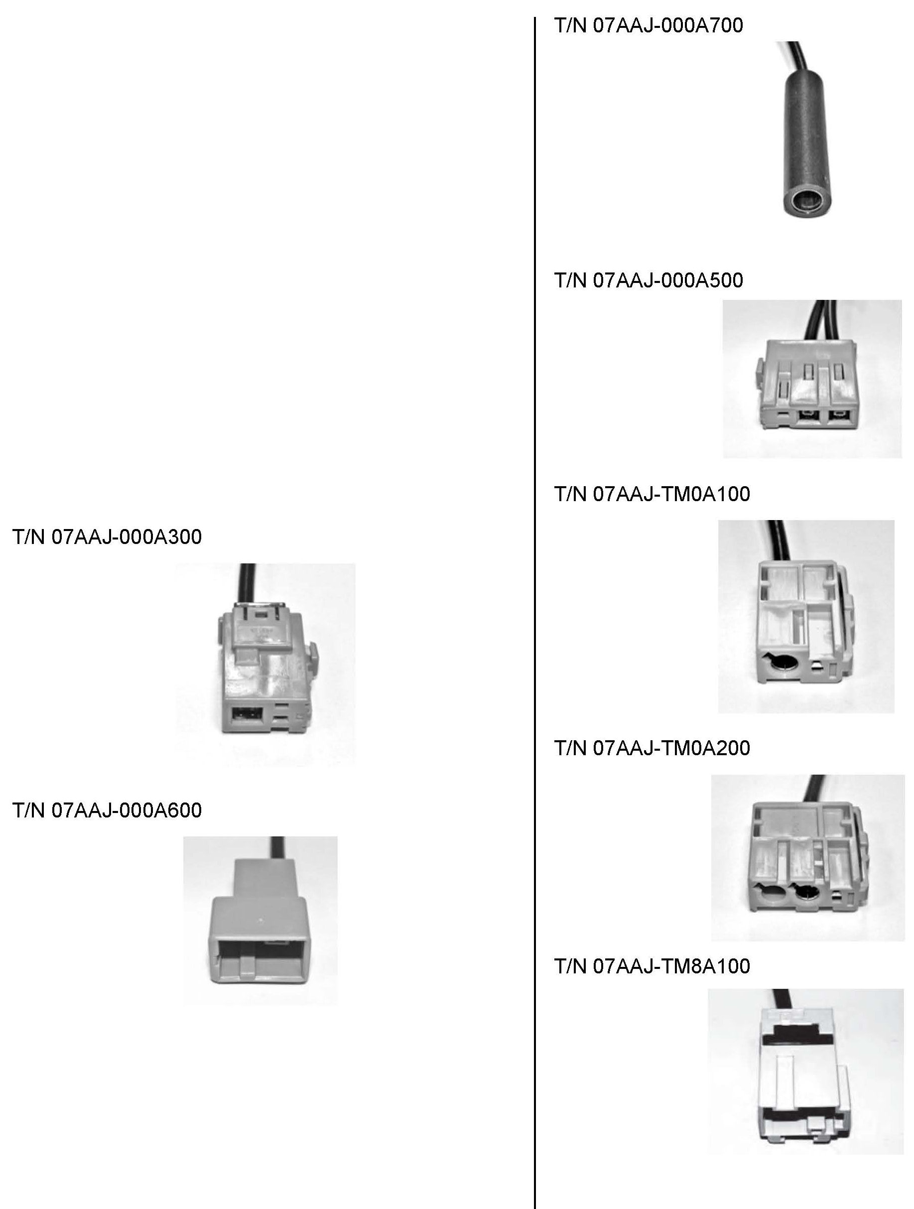 Adapter T/N 07AAJ-000A700 has a small barrel adapter on one end with a standard barrel adapter on the other end. All other adapters have a standard barrel adapter on the end that is not shown.
