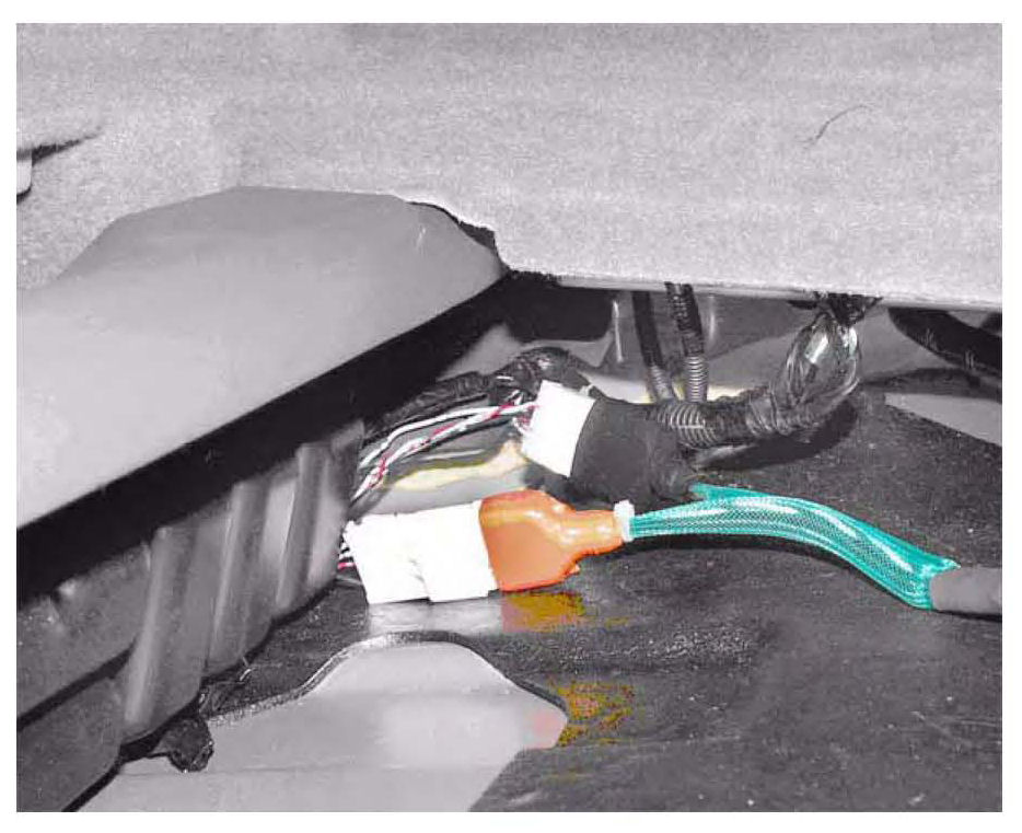 11. Connect the black connector of the AcuraLink reprogramming cable adapter to the 5P connector (with female terminals) on the vehicle, then connect the orange connector to the other 5P connector.