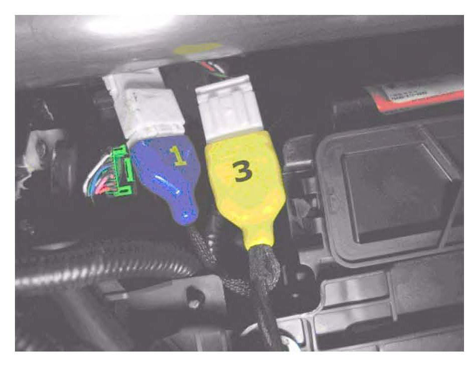 15. Disconnect the yellow No. 3 connector of the reprogramming cable from the vehicle.