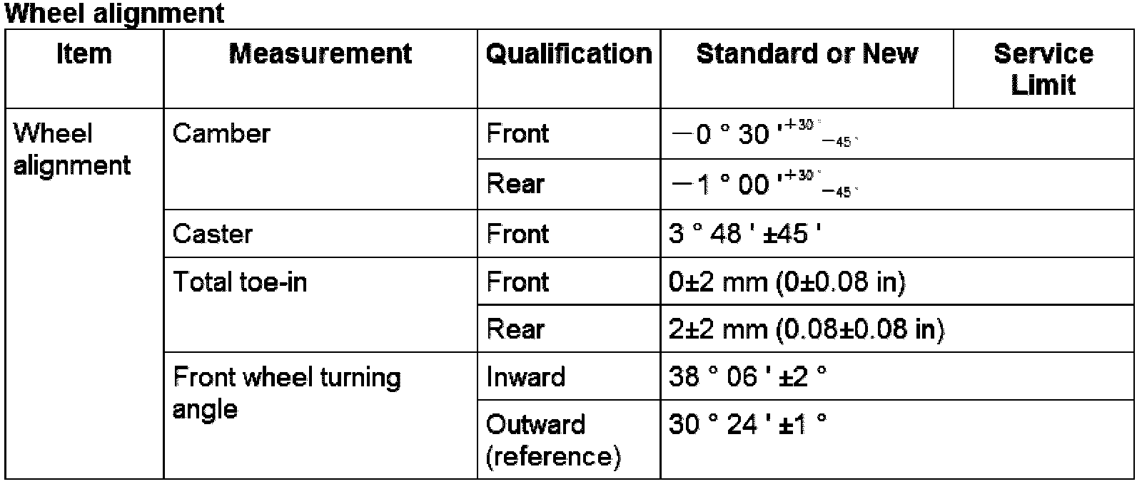 Wheel Alignment Specifications