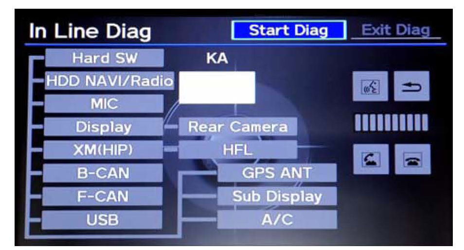2. You may see the factory In-Line Diagnosis screen below. If so, do the following or this screen will return every time the vehicle is started. If the screen does not appear, go to step 3.