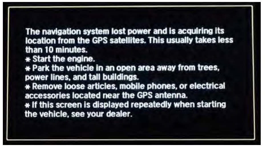 9. The navigation screen will show the GPS initialization message.