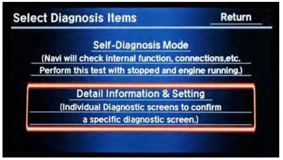 10. Press and hold the NAVI, BACK, and MENU buttons until the Select Diagnosis Items screen appears.