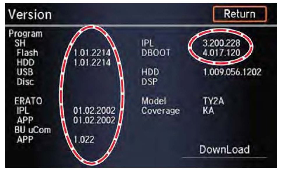 ^ If the battery power was interrupted during the update because the battery died, the vehicle was started or turned to the OFF mode during the update, or the software update failed, the audio-navigation unit may be locked. Go to RECOVERY PROCEDURE.