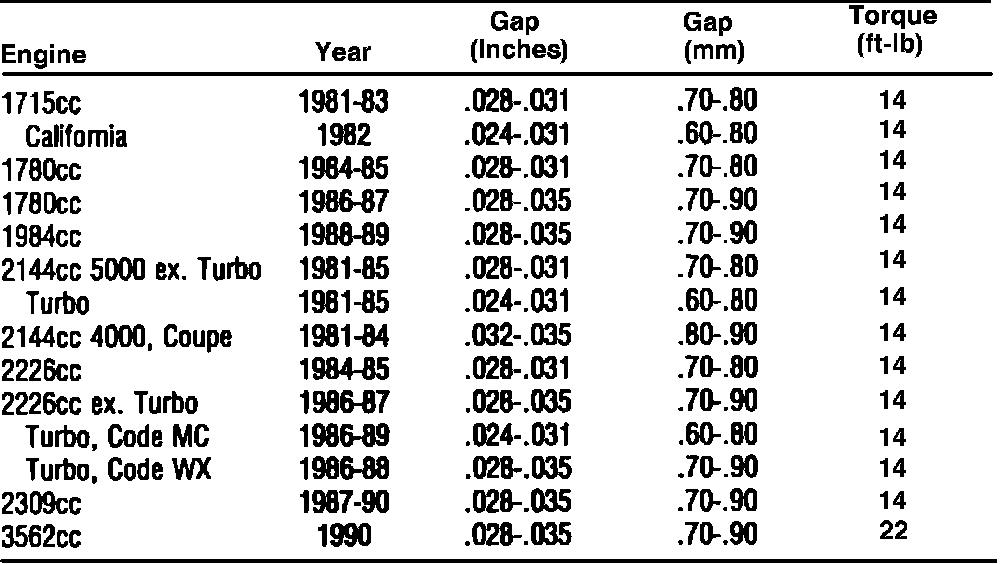 Spark Plug Specifications: