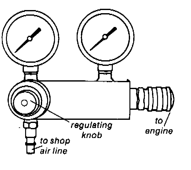 Connect shop air line and adjust knob to read 100 psi at left gauge.
