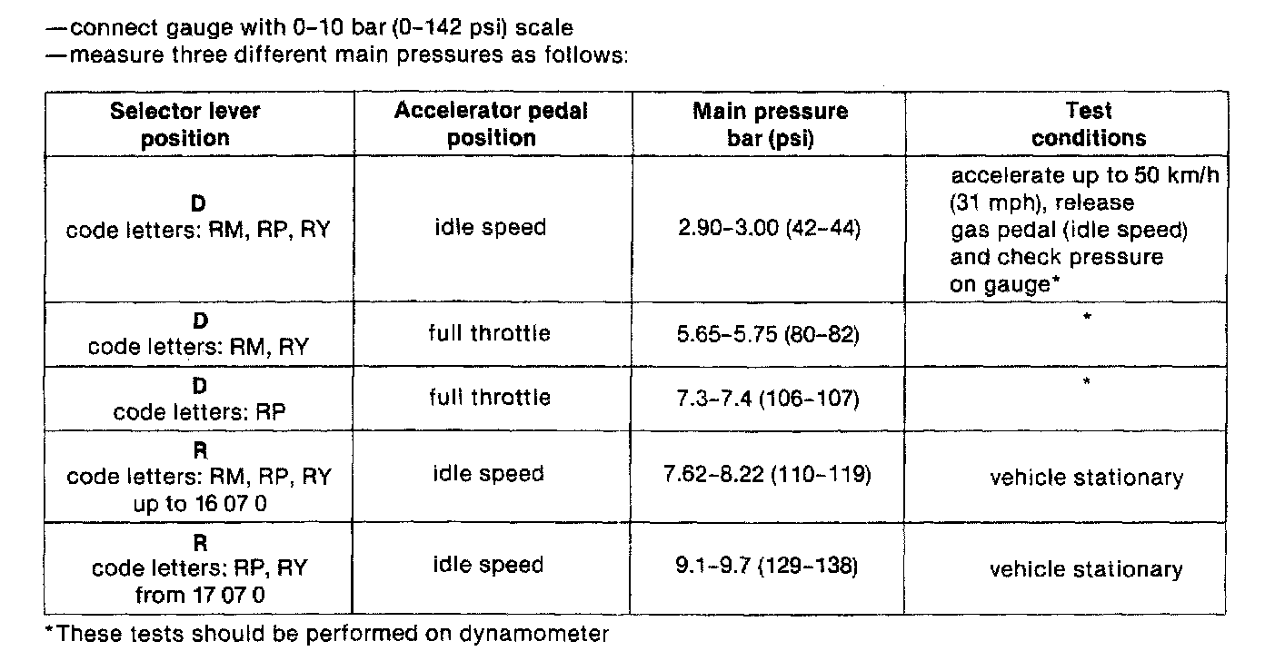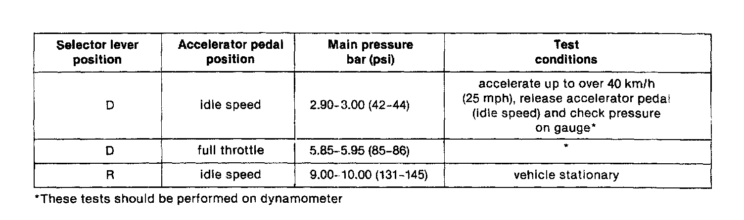A/T Type 087 Main Pressure Operation: