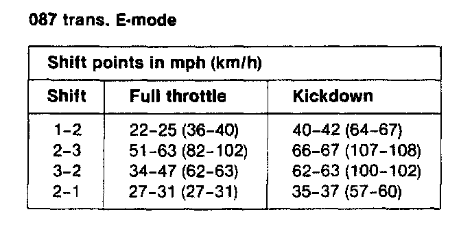 A/T Type 087 Shift Points, (Full Throttle / Kickdown):