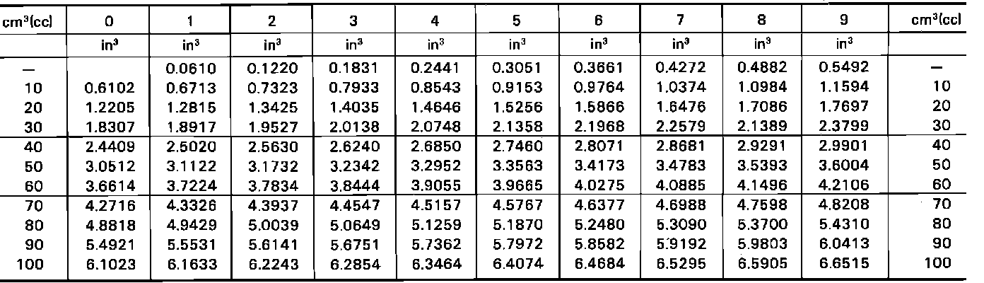 Fig. 7 Conversion Table, Cubic Centimeters To Cubic Inches:
